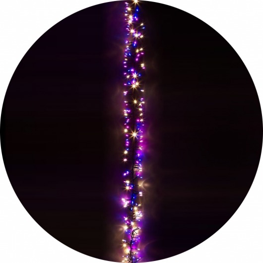 Светодиодная гирлянда "Волшебная гроздь" длиной 2,4 метра состоит из 288 бело-розово-фиолетовых led диодов. Световая гирлянда предназначена для украшения ёлок любого размера, а также новогоднего интерьера. Она представляет собой чёрный провод с тонкими "усиками", направленными в разные стороны. "Усики" — это короткие проводки с ярким светодиодом на конце. Рассчитана на постоянное горение в течение 50000 часов, питается от бытовой электросети при напряжении 220 V.