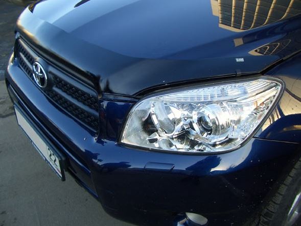 Дефлектор капота для Toyota RAV4 — это щиток из орг.стекла темного цвета, который крепится на переднюю часть капота. Благодаря тому, что дефлектор разработан специально для Toyota RAV4 от 2010 г.в., устанавливается он легко и быстро, при этом сверлить кузов вам не нужно. По форме же накладка полностью повторяет контуры капота. Данная модель прочна и долговечна: она надежно крепится, не боится коррозии, экстремальных температур и серьезных перегрузок.