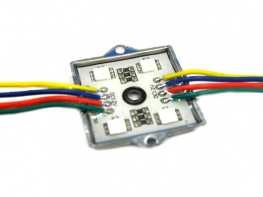 Квадратный светодиодный модуль MS 5050-4 IP65 RGB это 4 диода SMD 5050 цвета RGB и резисторы с рабочим напряжением 12V, которые находятся в металлическом корпусе. Вы можете управлять модулем и создавать яркие световые эффекты с помощью контроллера RGB. Корпус залит двухкомпонентным компаундом. Поэтому вы можете использовать светодиодный модуль led в условиях  повышенной влажности и резкого перепада внешней температуры от  -30 до +50 градусов.