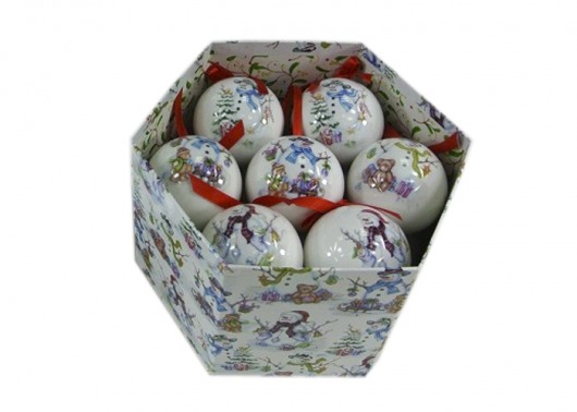 Стоит ли говорить, что такой набор в красочной подарочной коробке станет отличным новогодним подарком кому-нибудь из ваших родных и близких. Дети особенно будут рады таким ярким шарикам на елку с веселыми новогодними рисунками — добродушный снеговик наверняка придется им по душе. К тому же, пластиковые шары не бьются и потому безопасны для детей.