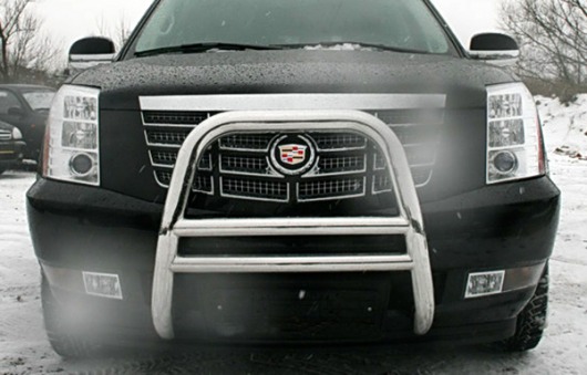 Передняя решетка Cadillac Escalade (кенгурятник) – это защитная дуга на бампер из нержавеющей стали диаметром 76 мм.