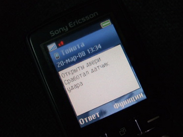 «Сработал датчик удара, воздействие слабое (среднее, сильное)!». Чувствительность датчика настраивается по телефону.