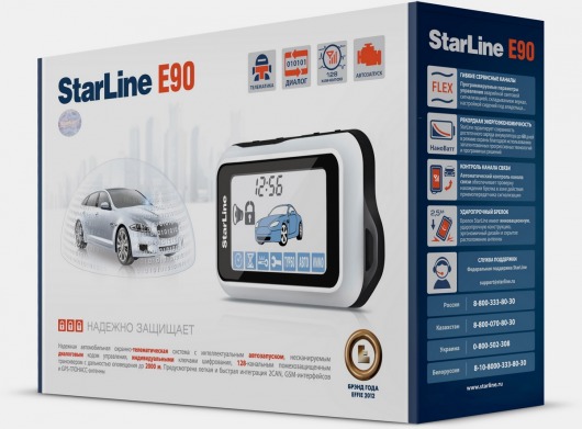 Автосигнализация StarLine E90 GSM, новинка 2013 года — это не просто охранная система, это охранно-телематический комплекс, в основе которого несканируемый диалоговый код управления. В комплекте есть SIM-карта. Широкий функционал, включающий в себя функцию автозапуска, позволит создать из вашего автомобиля неприступную крепость. Дальность действия — до 2000 метров.