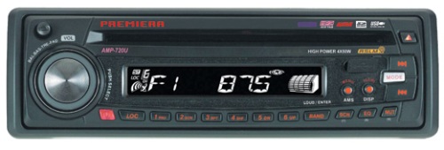 CD/MP3 ресивер Premiera AMP-720U среднего класса со съемной передней панелью и специальным футрялом для ее хранения. Устройство способно запоминать до 18 различных радиостанций с уверенным приемом. Возможность считывания информации с различных носителей, таких как флеш-карты памяти и SD-карты.