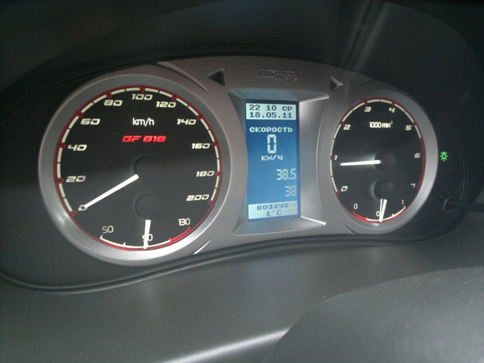 • Важная часть GF-818 — бортовой компьютер, управлять которым довольно просто. Для этого нужно воспользоваться специальным подрулевым переключателем, очень удобным и доступным в любой момент. Управлять автомобильным компьютером можно и с помощью поворотного энкодера, расположенного прямо на комбинации приборов.