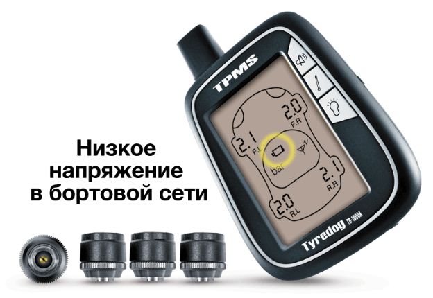 • Отображение не только температуры/давления в колесах, но и предупреждения о низком напряжении бортовой сети, а также низком заряде элемента питания.