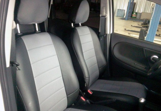 Вопросы и отзывы про Чехлы автомобильные для Nissan Note (черно-светло-серые, экокожа)