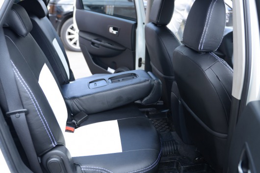 Вопросы и отзывы про Чехлы автомобильные для Nissan Qashqai, 7 мест, от 10 г.в. (черно-белые со строчкой, экокожа)