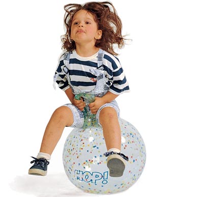 • Благодаря специальной удобной ручке, ребенок может удобно сидеть на мяче и прыгать, отталкиваясь ногами от пола.