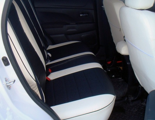 Вопросы и отзывы про Чехлы автомобильные для Mitsubishi Outlander I 00-07 г.в. (бело-черные, экокожа)