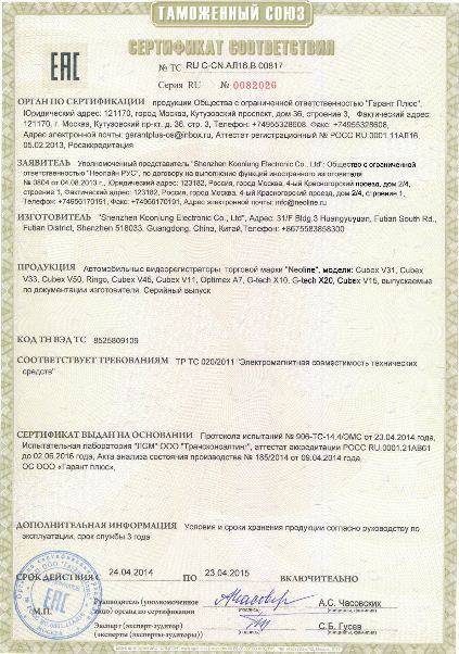 • Высокое разрешение и четкое изображение. Видеопроцессор Ambarella A5L обеспечивает очень высокое качество дневной и ночной съемки. Neoline Cubex V33 снимает в Full HD разрешении 1920х1080. Вместе с матрицей Aptina 0330 3Мп он гарантирует четкую картинку.