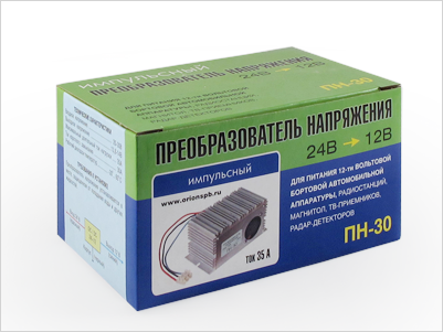 Если у вас в дороге появилась необходимость подключить какое-то оборудование, но напряжение в сети вашего авто не позволяет этого сделать, то мощный импульсный преобразователь напряжения Орион ПН-30 24-12В 35А лего решит вашу проблему. Данный инвертор служит для преобразования напряжения 24В в 12В и предназначен для автомобилей с номинальным напряжением бортовой сети 24В.