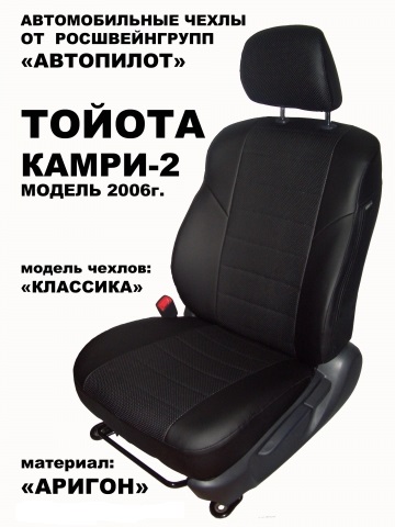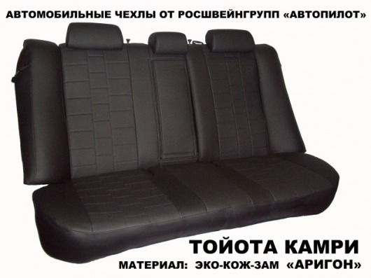 Оригинальные чехлы для Тойота Камри V40 (2 кузов) сделаны из экокожи Аригон —  экологически чистого и сертифицированного материала. Авточехлы из экокожи не вызывают аллергию, устойчивы к перепадам температур и не пропускают жидкость.