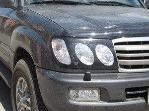 Защита передних фар для Toyota Land Cruiser 100 — это специальные накладки на передние фары, своего рода "очки" для фар, по форме повторяющие их контуры. Защита фар автомобиля изготавливается из прочного поликарбоната и предназначена для того, чтобы уберечь фары вашего авто от кражи и механических повреждений.
