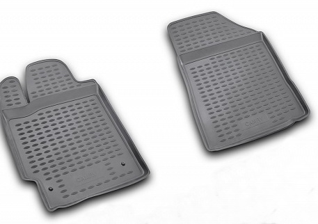 Полиуретановые коврики для автомобиля гладкие, приятные и не пропускают влагу. Черный цвет универсален и подойдет любому авто. В комплекте вы получите 2 коврика в салон автомобиля.