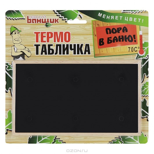 При достижении температуры в 70С в парной на термо-табличке появляется приглашающая надпись «Пора в баню». Кроме того, табличка выполнена в привлекательном дизайне и будет как нельзя более уместно смотреться на входе в парную. Рамка таблички выполнена из дерева и не будет диссонировать с интерьером парной или сауны, более того, она заметно украсит интерьер, сделает его нескучным и добавит колорита.