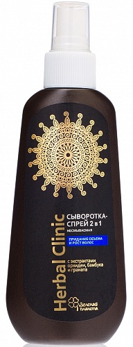 Шикарные волосы до самых кончиков! Густые, пышные, сильные, ухоженные волосы. Ощущение свежести и невесомости. Легко расчёсывать, легко укладывать. Легкая и эффективная сыворотка-спрей работает одновременно в 2-х направлениях - придает волосам восхитительный объем и стимулирует рост. Уникальные растительные комплексы усиливают микроциркуляцию, служат настоящим питательным коктейлем для волосяной луковицы и стержня волоса, помогая возобновить цикл роста волос и предотвратить выпадение. Воздействие витаминов, пептидов и микроэлементов повышает плотность и блеск волос, восстанавливает и защищает волосы при укладке. Для сухих, тусклых, ослабленных поврежденных волос против выпадения и для защиты при укладке.
