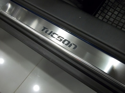 Внутренняя накладка на порог Hyundai Tucson — это аксессуар автомобильного тюнинга, который защищает внутренний порог от механических повреждений при посадке и высадке из машины. Декоративные накладки с рисунком на внутренние пороги предназначены для автомобилей Hyundai Tucson от 2005 г.в.