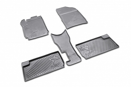 Полиуретановые коврики для автомобиля гладкие, приятные и не пропускают влагу. Черный цвет универсален и подойдет любому авто. В комплекте вы получите 5 ковриков в салон автомобиля.