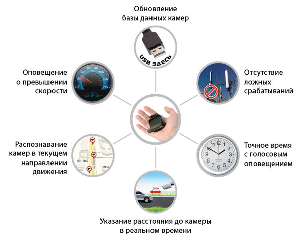 Когда вы проедете «опасный» участок, прибор подаст звуковой сигнал. Кстати, чтобы лишний раз не отвлекать вас от вождения, GPS-информатор будет реагировать только на те камеры ДПС, которые находятся по ходу движения вашего автомобиля. Но зато будет всегда следить за вашей скоростью и в случае превышения напомнит, что не мешало бы немного сбросить.