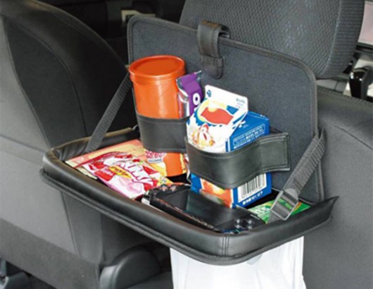Столик JK-60 - это специальное приспособление, которое крепится на спинку переднего сидения для того, чтобы повысить комфорт во время поездки для пассажиров на заднем сидении. На этом столике может разместиться, например, обед (размеры столика 250х350х30 мм), ведь в дороге часто возникает именно такая проблема - рук всего две, а еду нужно чем-то запивать, и напитки порой бывают горячими.