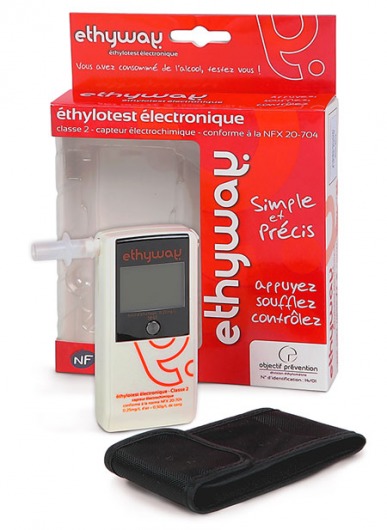 Ethyway — персональный алкотестер, который определяет концентрацию алкоголя в крови человека по выдыхаемому воздуху. Модель оснащена электрохимическим датчиком, которым обладают профессиональные алкотестеры. Датчик реагирует исключительно на алкоголь, благодаря чему показания алкотестера становятся наиболее точными. Алкометр имеет компактные размеры (102х52х22 мм) и чехол для хранения.