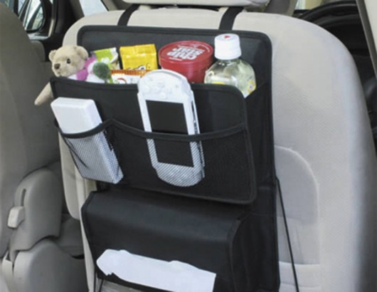 Дополнительный карман JK-43 имеет 3 основных отделения и 1 дополнительное, которое может быть использовано как держатель салфеток. Специальная система крепежа позволяет закрепить этот органайзер за спинку переднего сидения. Установка возможна только на сидения, которые имеют съемный подголовник. Приспособление совершенно травмобезопасно.