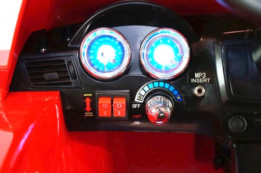 Все детали авто тщательно проработаны и качественно выполнены. А как иначе? Ведь электромобиль изготовлен по лицензии и под контролем компании BMW. Эта модель может похвастаться особенно тщательной проработкой деталей торпедо: здесь и кнопка запуска и выбора скорости, и рычаг переключения хода (вперед/назад), и мягкая неоновая подсветка. Специальное фактурное покрытие руля имитирует кожаную оплетку.