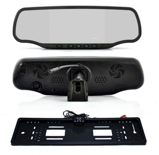 Помимо парктроника с 4-мя датчиками, в комплект поставки входит влагозащищенная камера заднего вида, которая встраивается в рамку для номера. Благодаря специальной матрице, камера способна ловить изображение в темноте на расстоянии до 5 метров. Учитывая угол обзора в 170°, этого более чем достаточно для безопасной парковки. В любое время суток.