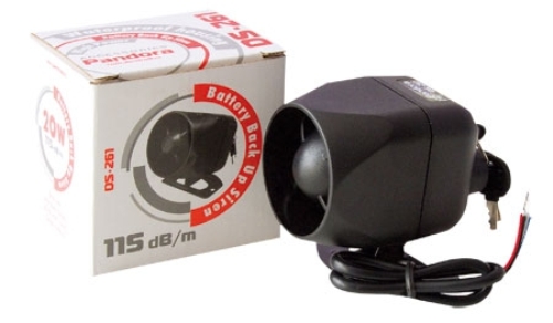 Сирена автономная 20 Вт Pandora DS-261 (мал) имеет автономное питание, которое обеспечивается за счет встроенного аккумулятора повышенной мощности. Корпус сирены выполнен из черного пластика повышенной прочности, к тому же, этот корпус полностью влагозащищенным, что обеспечивает долговечность и уверенную работу сирены.
