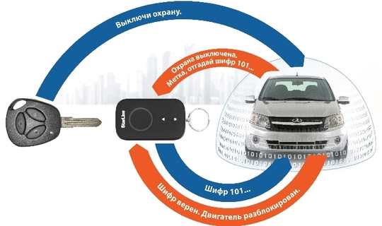 Опционально доступно управление охранной системой с помощью штатного брелока. Это режим Super Slave. Компактный брелок Starline выступает в роли метки. Штатная охрана становится еще надежнее благодаря диалоговому коду управления.