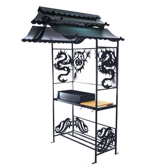 Удлиненный металлический навес защищает мангал от осадков, так что никакой дождь не помешает вам приготовить вкуснейший шашлык для родных и друзей.