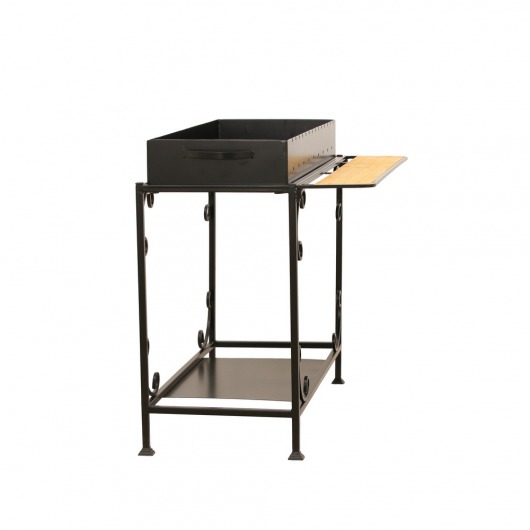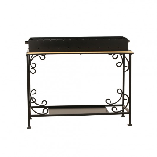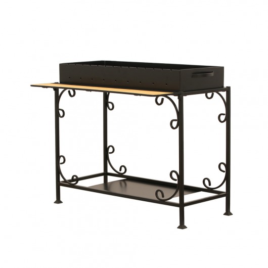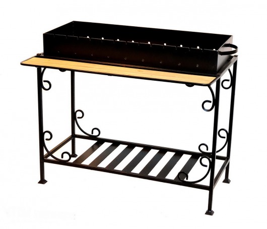 И это не единственные преимущества дачного кованого мангала МПУ. Несмотря на изящность и компактность, его конструкция отличается особой прочностью. Стойка усилена элементами ручной ковки, а ящик мангала изготовлен из жаростойкой стали толщиной 4 мм, которая выдерживает высокие температурные нагрузки в течение долгого времени и не деформируется. А спереди жаровни расположился удобный съемный деревянный столик, который можно использовать как подставку для посуды или вместо разделочной доски.