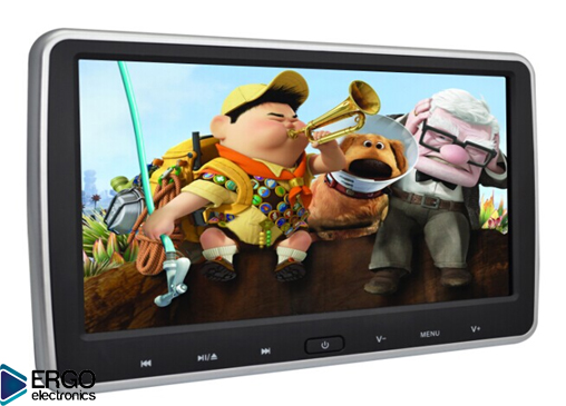 Навесной монитор с креплением на подголовник автомобиля ERGO ER10VS - поддерживает популярные форматы и воспроизводит видео со следующих носителей: USB, DVD, SD, AV, HDMI. К достоинствам модели можно отнести сверхтонкий корпус для подобного типа устройств в 30мм и яркий, контрастный экран размером 10 дюймов (1024х600).