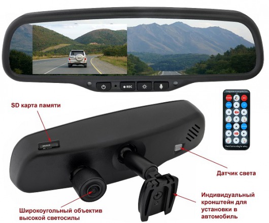 Авторегистратор-невидимка. Одним из важнейших преимуществ зеркала с видеорегистратором и монитором в том, что оно устанавливается на место штатного внутрисалонного зеркала заднего вида. Чем это удобно? Во-первых, вам не придется искать место для авторегистратора на лобовом стекле. А во-вторых, такой автомобильный видеорегистратор совершенно незаметен и не привлечет к себе внимания автомобильных воришек. Так что можете быть уверенными, что в ваше отсутствие регистратор в зеркале заднего вида будет в безопасности.