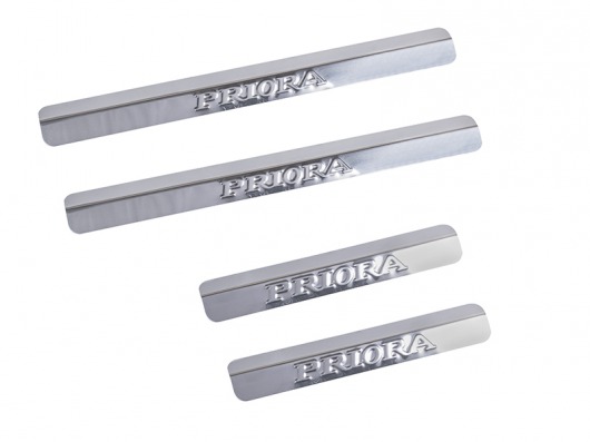Накладки на металлические пороги дверей ВАЗ 21104 с логотипом авто не только обеспечивают защиту верхней и боковой поверхности внутреннего порога, но и отлично вписываются в интерьер автомобиля, подчеркивая его стиль и индивидуальность. C монтажом проблем не возникнет: установка накладок на внутренний порог для ВАЗ 21104 производится на штатные места с помощью скотча 3M.