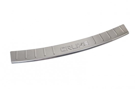 Декоративная накладка на задний бампер Chevrolet Cruze — это аксессуар автомобильного тюнинга, который защищает верхнюю часть заднего бампера от механических повреждений при загрузке или выгрузке вещей из багажника. Декоративные накладки на задний бампер предназначены для автомобилей Шевроле Круз 2011-2013 г.в.
