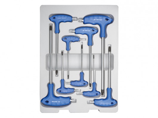 Набор ключей TORX KING TONY 22309PR позволяет закрутить или открутить все болты под ключ звездочку. А т.к. зачастую размер болта-звездочки наглядно определить сложно, то набор ключей — просто незаменимое оборудование для работы. Подобрав нужный диаметр, вы сможете выполнить свою задачу надежно и в минимальные сроки.