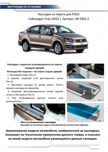 Вопросы и отзывы про Накладки на пороги для Volkswagen Polo от 15 г.в. (Rival)