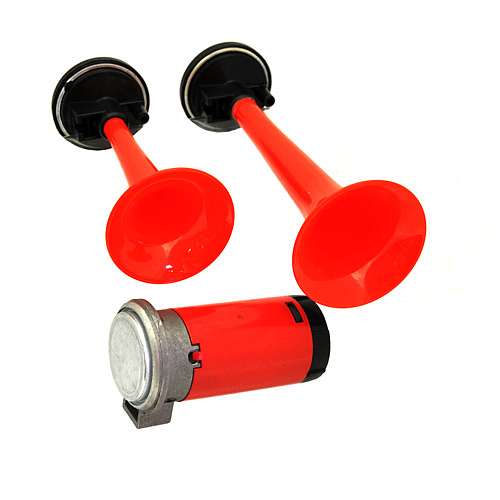 Звуковой сигнал пневматический совместим с автомобилями у которых напряжение бортовой сети составляет 12 Вольт. Корпус клаксона выполнен в красном цвете, устройство имеет достаточную мощность сигнала и надежность. Для установки звукового сигнала не обязательно обладать специальными знаниями и умениями в этой области. Все используемые крепления универсальны и подойдут для установки на любой автомобиль.