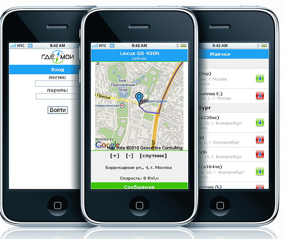 На изображениях снизу представлен интерфейс системы слежения gdemoi.ru с примерами работы и отображения информации.